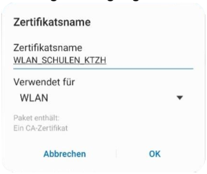 - Geben Sie dem Zertifikat den Namen WLAN_SCHULEN_KTZH
